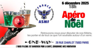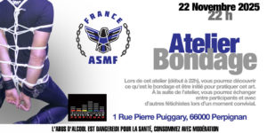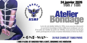 Lors de cet atelier (début à 16h), vous pourrez découvrir ce qu’est le bondage et être initié pour pratiquer cet art. À la suite de l’atelier (18h00), vous pourrez échanger entre participants et avec d’autres fétichistes lors de l’apéro convivial puis avec la galette des Rois.