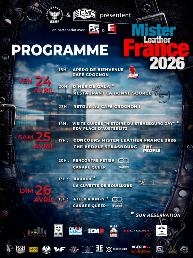 Le concours Mister Leather France 2026 aura lieu du 24 au 26 avril à Strasbourg.